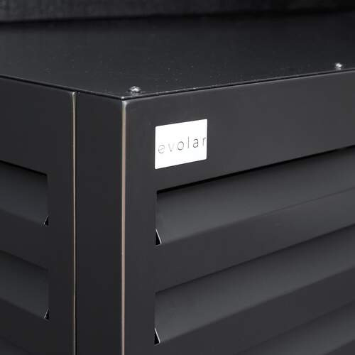 De Evolar Evo-cover omkasting is geschikt voor alle merken buitenunits van een airco of warmtepomp installatie en geeft een elegante en fraaie afwerking dat niet afsteekt van het gebouw of woning.